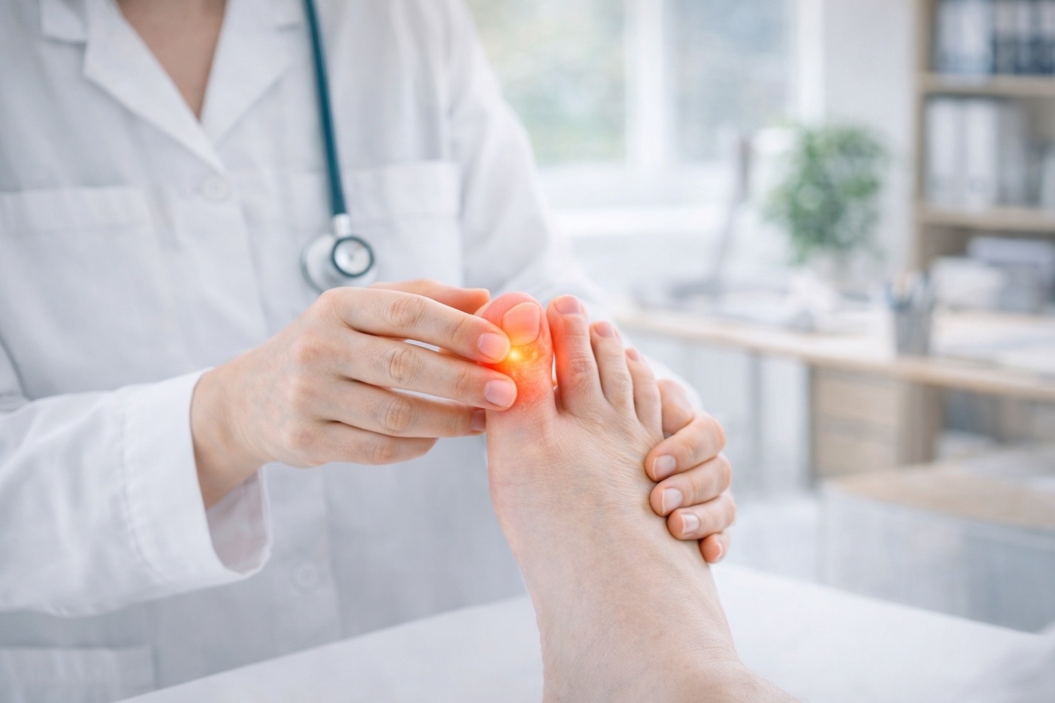 Наиболее характерным проявлением подагры являются острые приступы боли в суставах, чаще всего в области большого пальца стопы. Боль сопровождается отёком, покраснением и повышением температуры кожи над суставом. При длительном течении заболевания возможны хронические боли, деформация суставов и ограничение подвижности.