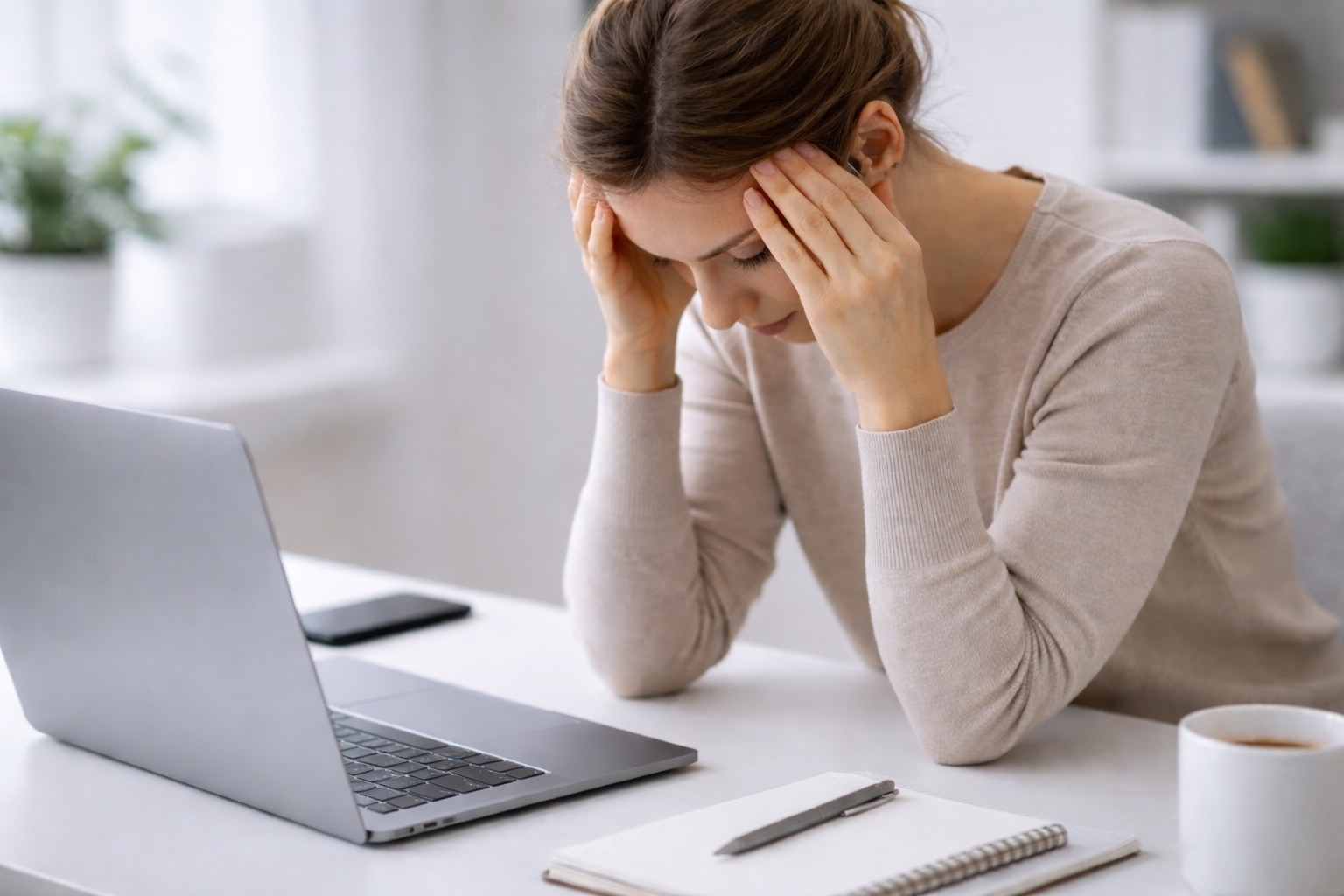 Обычная головная боль напряжения часто связана со стрессом, переутомлением мышц шеи и плеч. Она обычно двусторонняя, давящая, как «обруч», и редко полностью выбивает из привычного ритма.